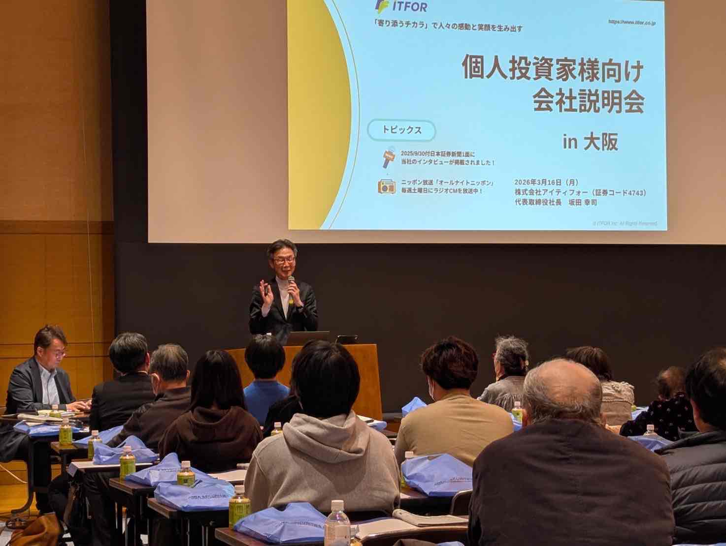 2026年3月16日(月)、阪南市文化センター「サラダホール」にて、 日本証券新聞主催の『株式講演会・IRセミナー』 を開催いたしました。